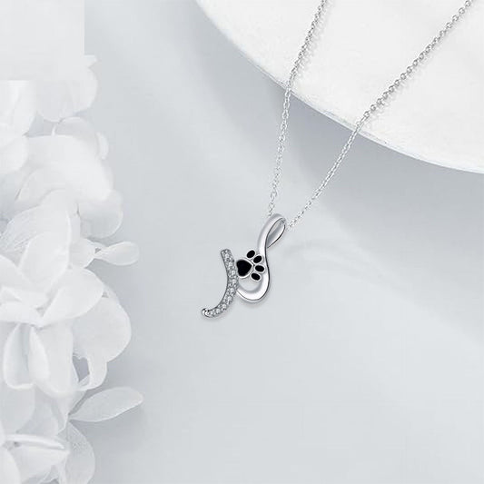 Cute Paw Print Necklace Silver with Cubic Zirconia